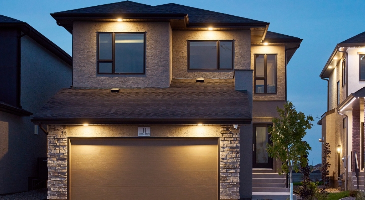 Premium show homes are located on Stoneknife Crescent and Robert Bockstael Drive, while custom show homes are located on Sarsprilla Bend and multi-family show homes are in Phase 8 of Sage Creek.